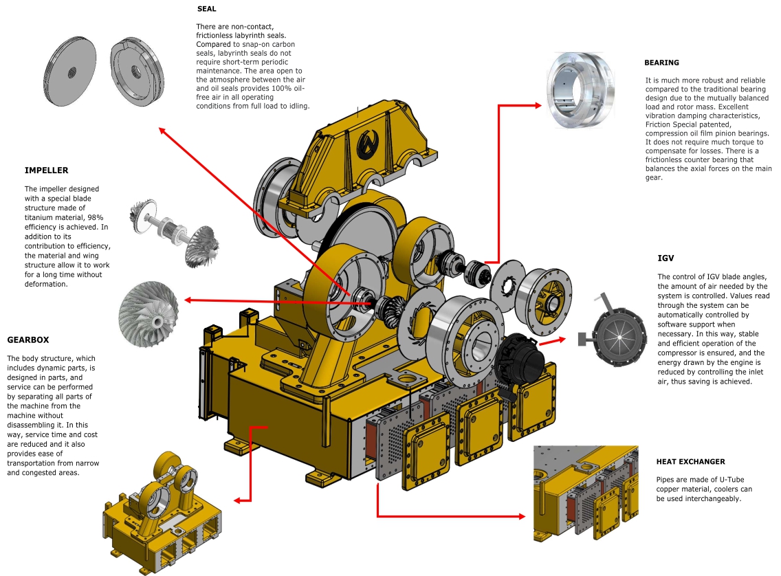 Critical speed analyzes of the rotor system were made for the safe operation of the compressor. |