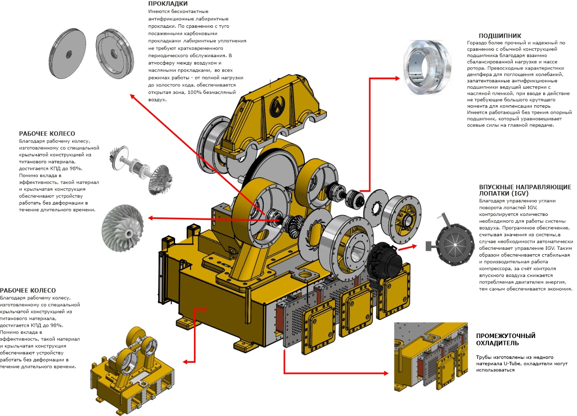 Благодаря улучшенному алгоритму, это устройство обеспечивает более безопасную работу по сравнению с другитми существующими на рынке компрессорами. Структура меню программ и настроек панели управления может использоваться для всех компрессоров. Кроме того, тот факт, что через панель управления он может обмениваться данными и панелями других компрессоров, обеспечивает удобство в работе оператора. Таким образом, можно уравнять срок службы/количество рабочих часов задействованных в работе устройств.